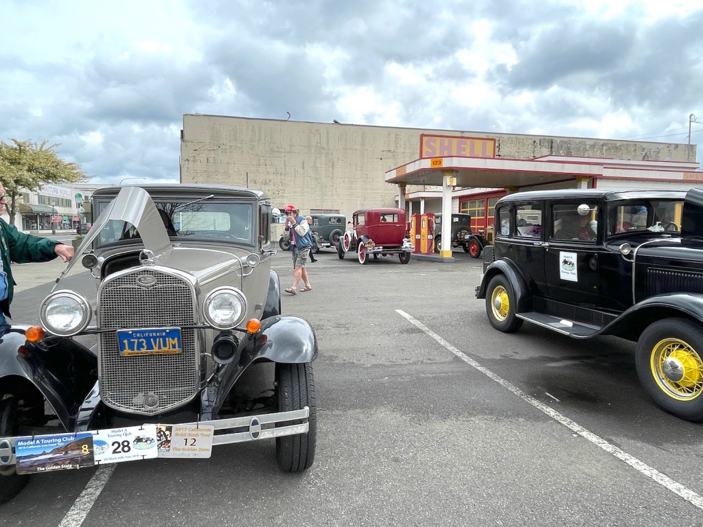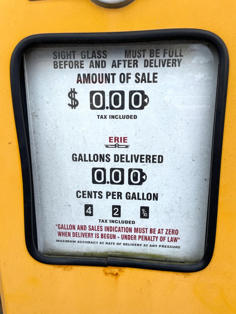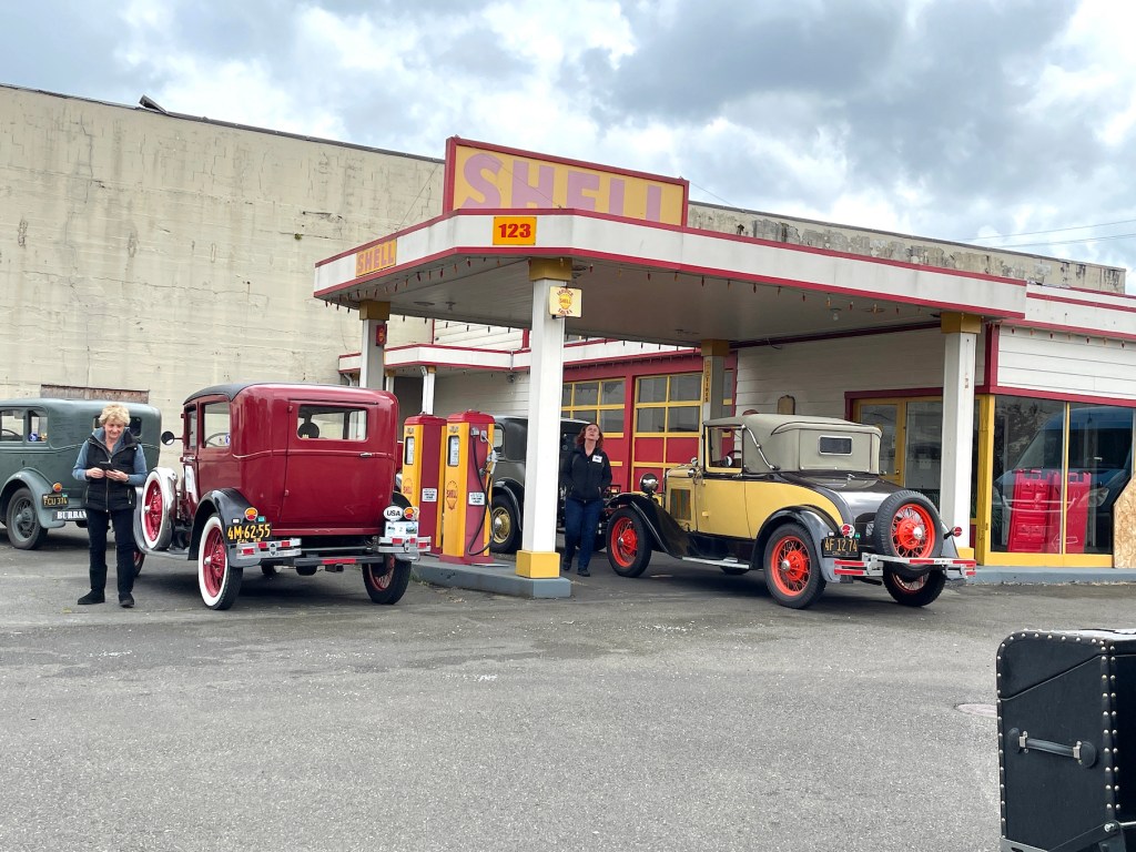 Nearby we found a restored gas station, and of course we couldn’t resist photos with the gas pumps.  Note the price on the face of the pump.