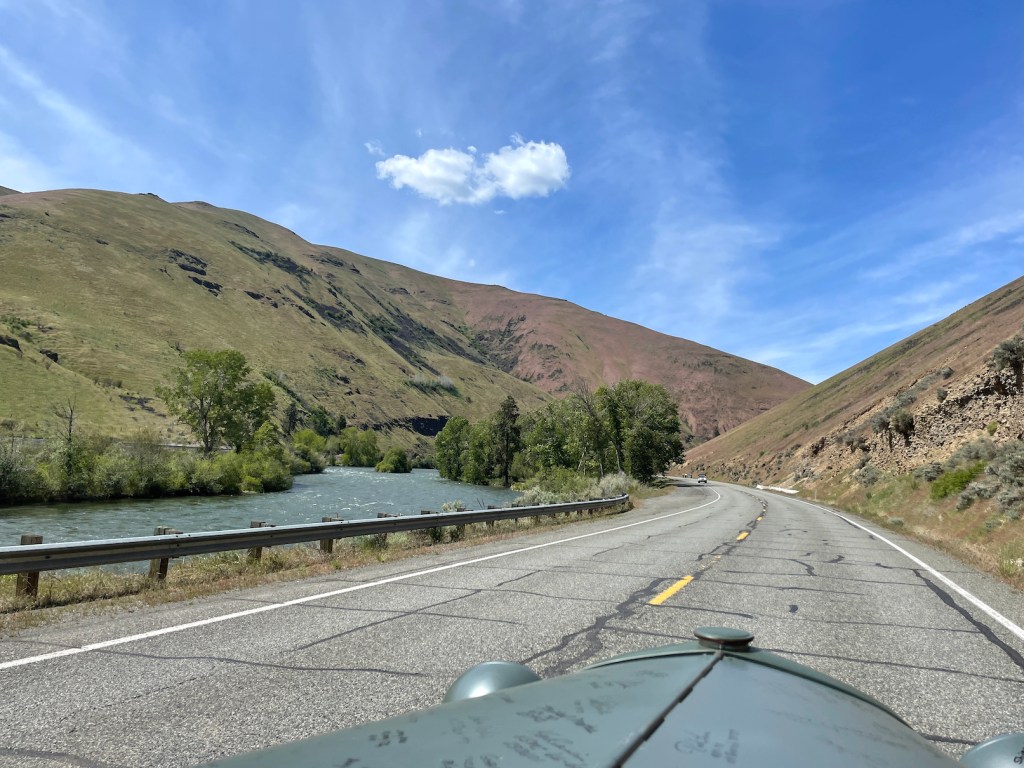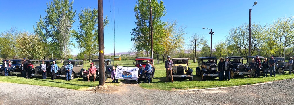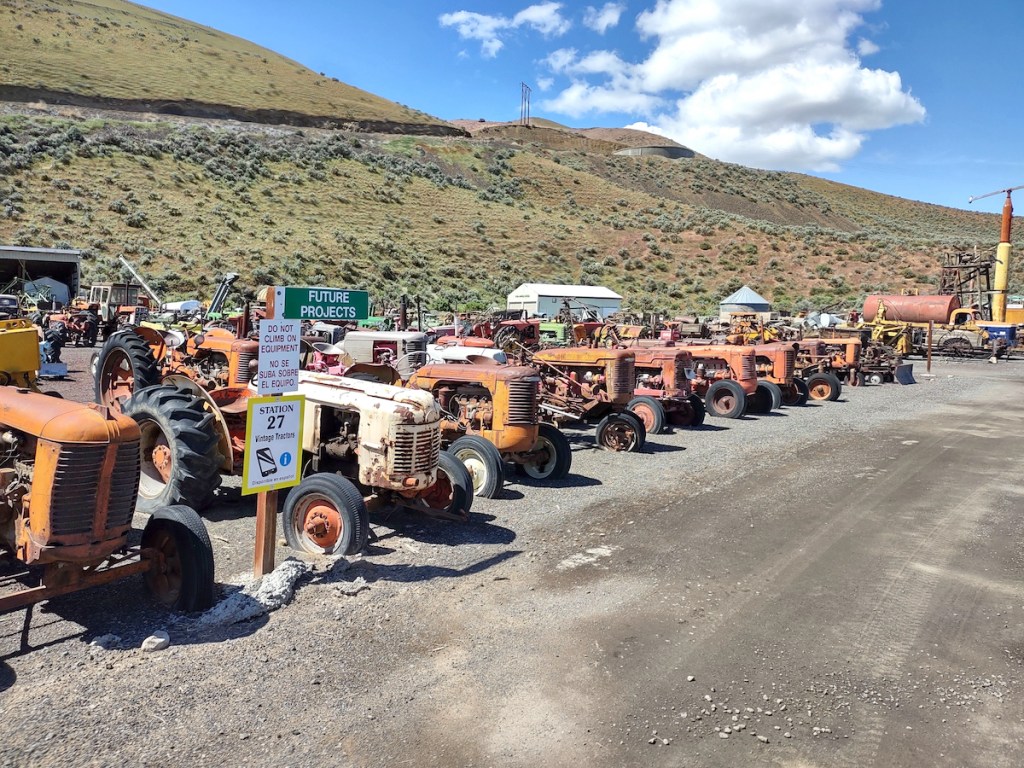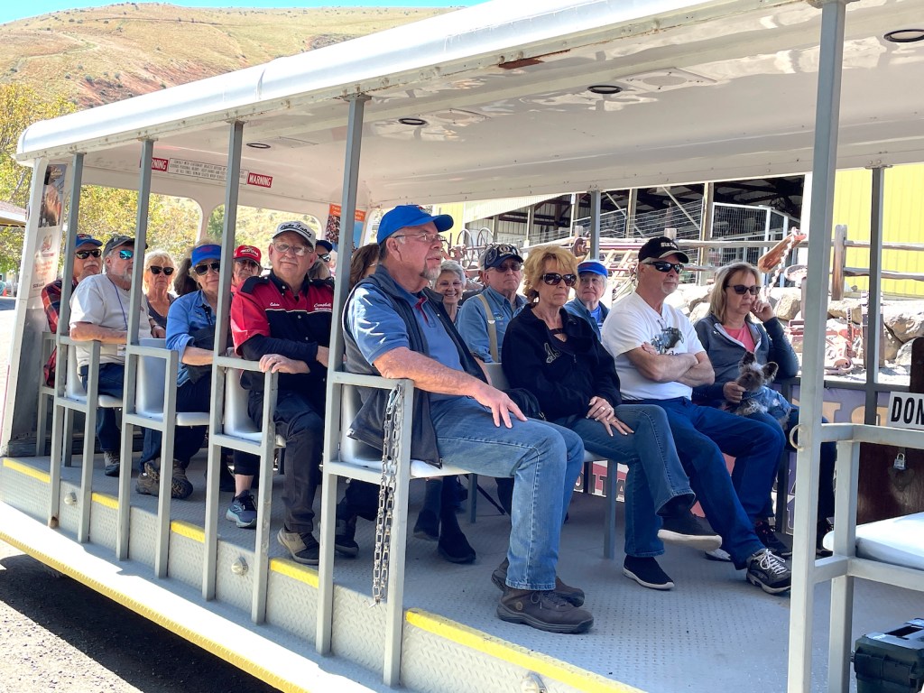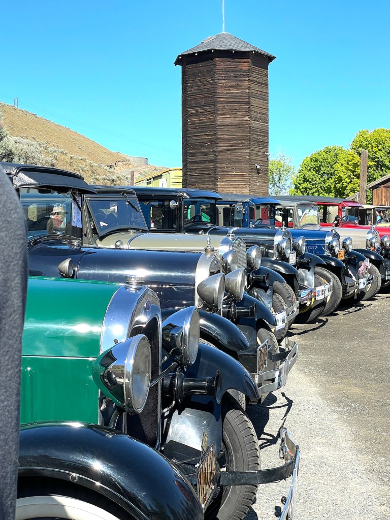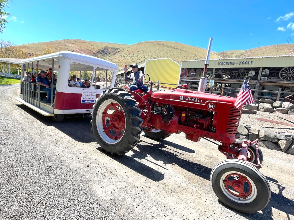On May 23rd, we left Yakima, WA: first stop was a group tour of the Central Washington Agricultural Museum. There had been some TV and newspaper publicity about our arrival, so we were met by a crowd of people curious about our cars. Then we were taken on a tractor-drawn tour of the museum’s outdoor space.